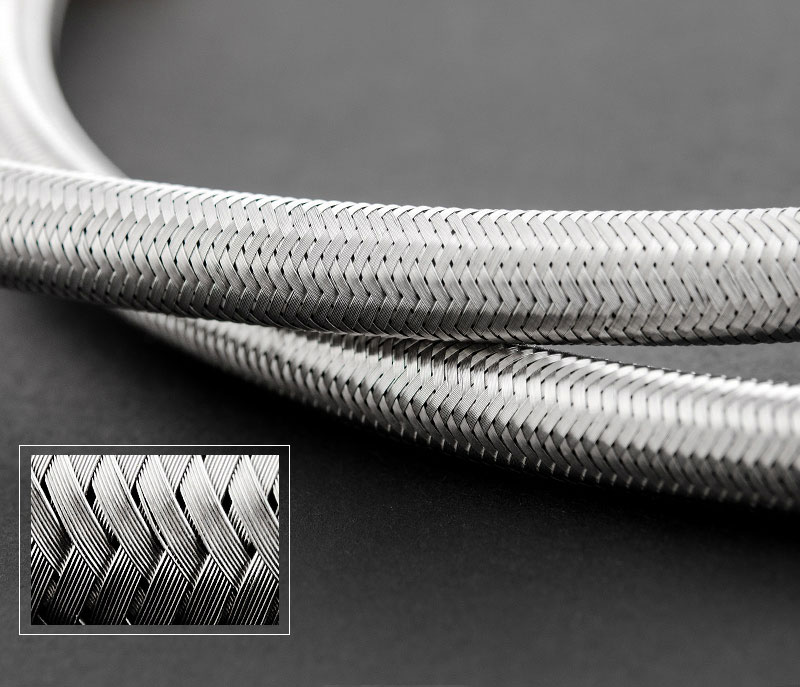 品質上乘的金屬軟管表面編織鋼絲緊密排列 |