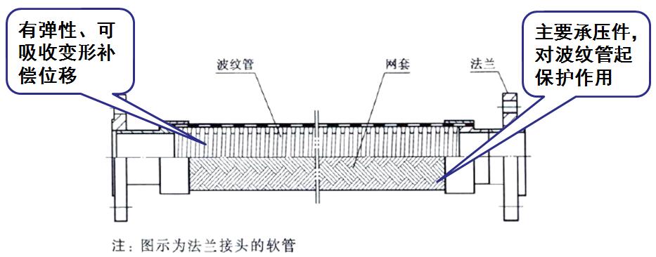 波紋金屬軟管主要由波紋管、網套和接頭組成,如圖所示。